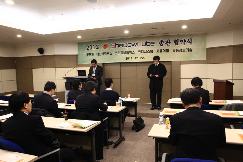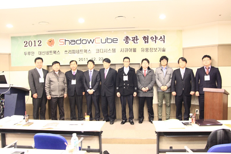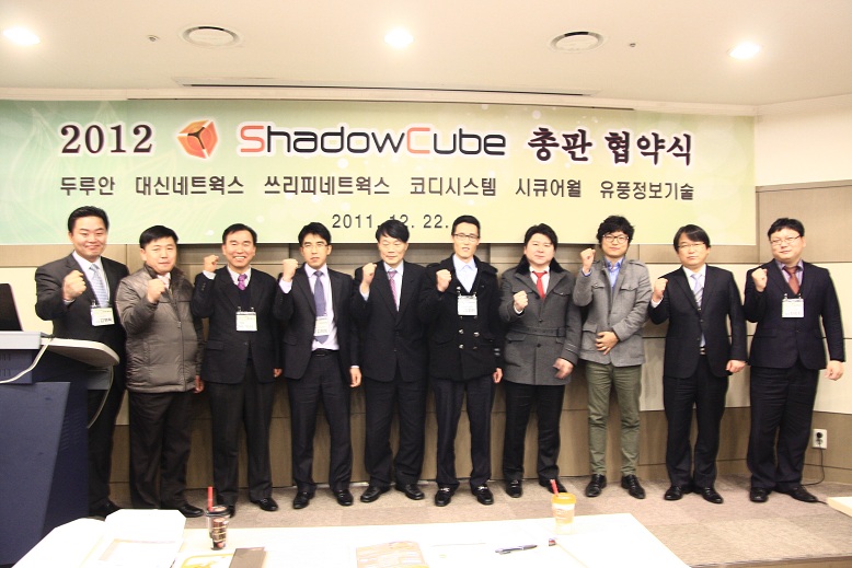 이번 섀도우큐브의 총판사 협약식에 참석한 회사는 대신네트웍스, 쓰리피네트웍스, 코디시스템, 시큐어월, 유풍정보기술과 프리미엄파트너로 10여개 기업이 참석 하였으며, 이번에 참석한 회사들은 모두 각 지역에서 IT보안 전문기업으로 활발한 활동을 하는 회사들이며 총판사는 각 지역에서 섀도우큐브를 독점 공급합니다.