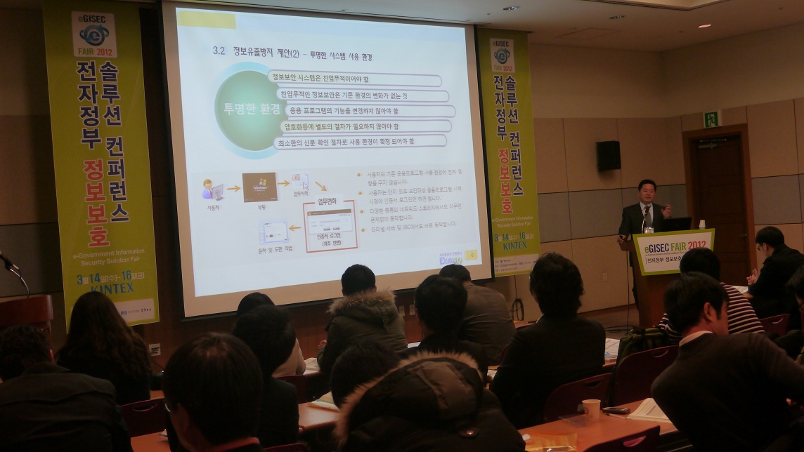 최근 급증하고 있는 사이버위협에 대응해 보다 안전한 전자정부 서비스를 제공하기 위해 개최된 <제1회 전자정부 정보보호 솔루션 페어(eGISEC Fair 2012)>가 3월 16일 성황리에 폐막 되었습니다. <제1회 전자정부 정보보호 솔루션 페어(eGISEC Fair 2012)>는 중앙부처, 지방자치단체, 공공기관의 IT 업무 담당자가 발주시기에 맞춰 정보보호 제품을 도입할 수 있도록 행정안전부가 주최, 한국인터넷진흥원, 한국CSO협회 주관으로 개최 되었습니다.