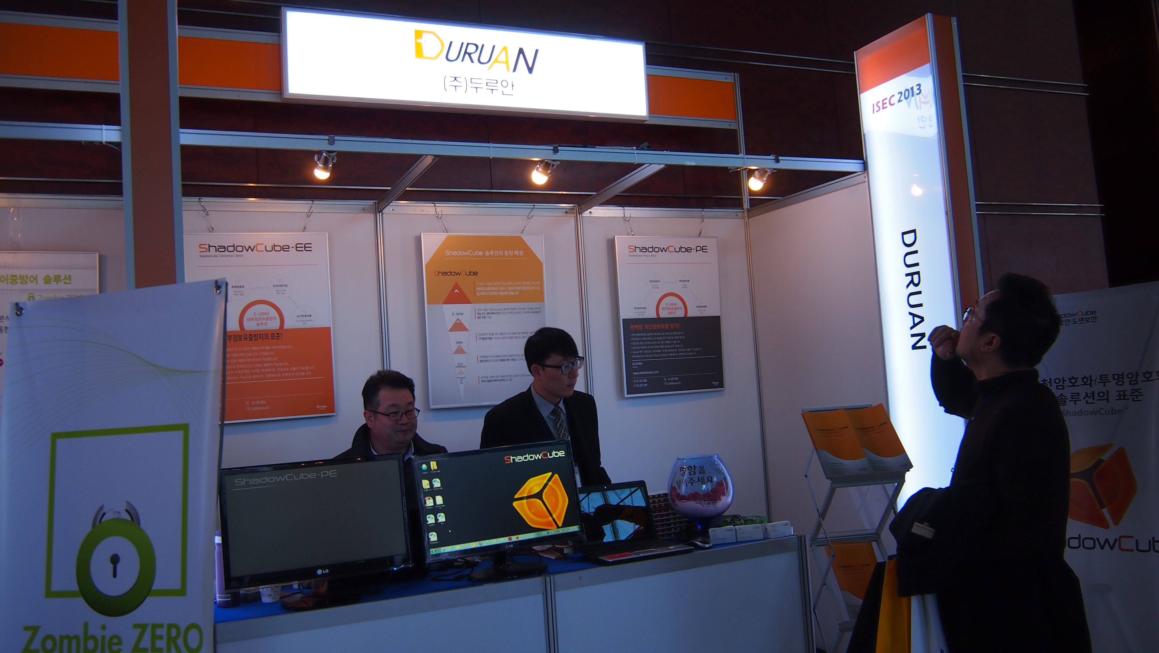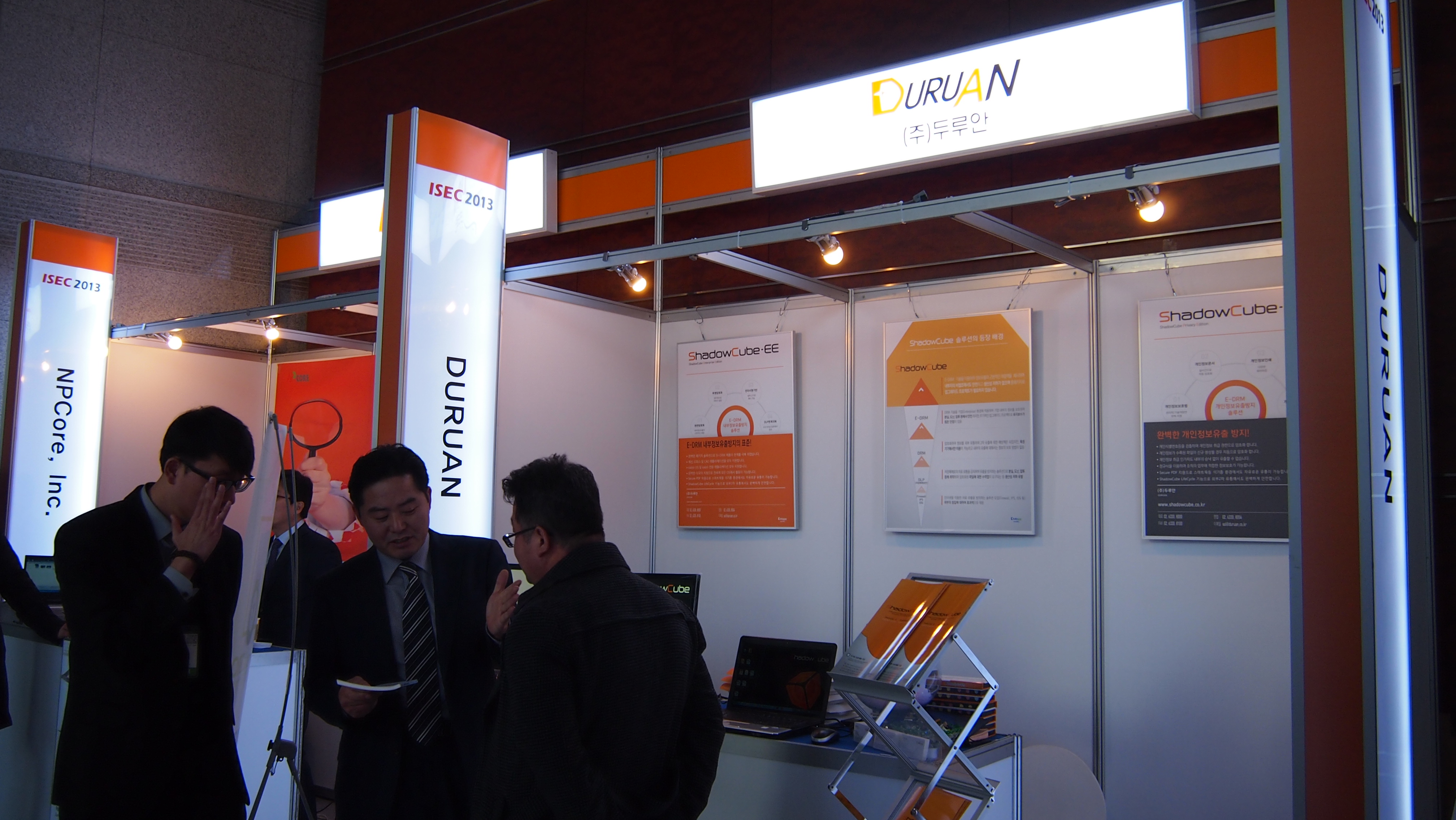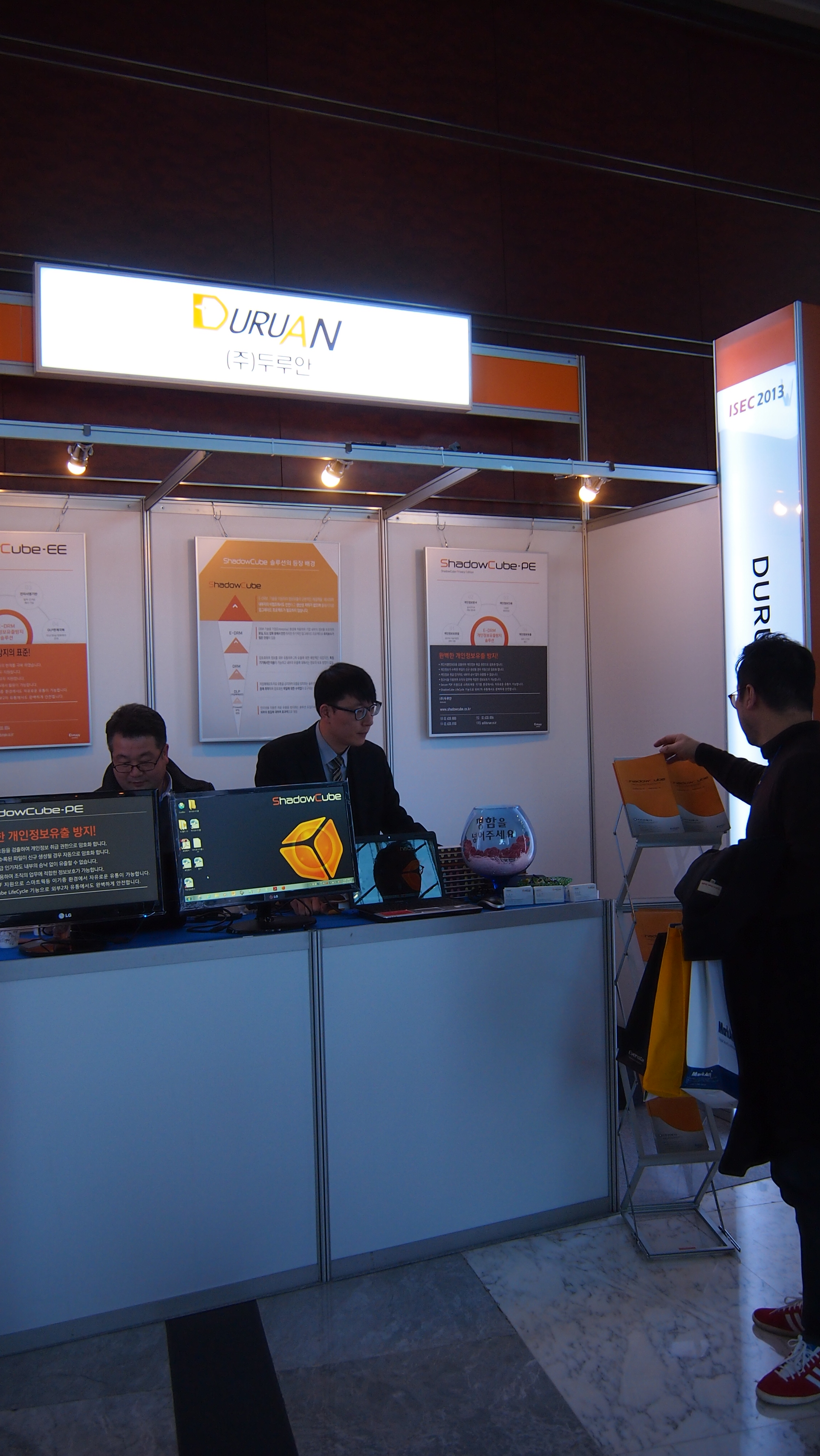 스마트 시대의 사회적 이슈인 정보보호의 최신 트렌드를 공유하고, 심도있는 논의를 통한 안전한 사회 구현에 기여함을 목적으로 열린 이번 ISEC 2013 (제 7회 국제 사이버 시큐리티 컨퍼런스)는 미래창조과학부와 안전행정부가 주최하고, 한국인터넷진흥원, ISEC 2013 조직위원회 주관하였으며, 당사의 ShadowCube도 정보보호 솔루션 전시품 중 하나로 출품하였습니다. 많은 관람객이 부스와 제품관련 자료에 큰 관심을 보이셨습니다.