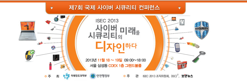 당사 제7회 국제 사이버 시큐리티 컨퍼런스 (ISEC 2013) 출품<br> - 미래창조과학부, 안전행정... 보도일|2013.11.22 조회수|4026