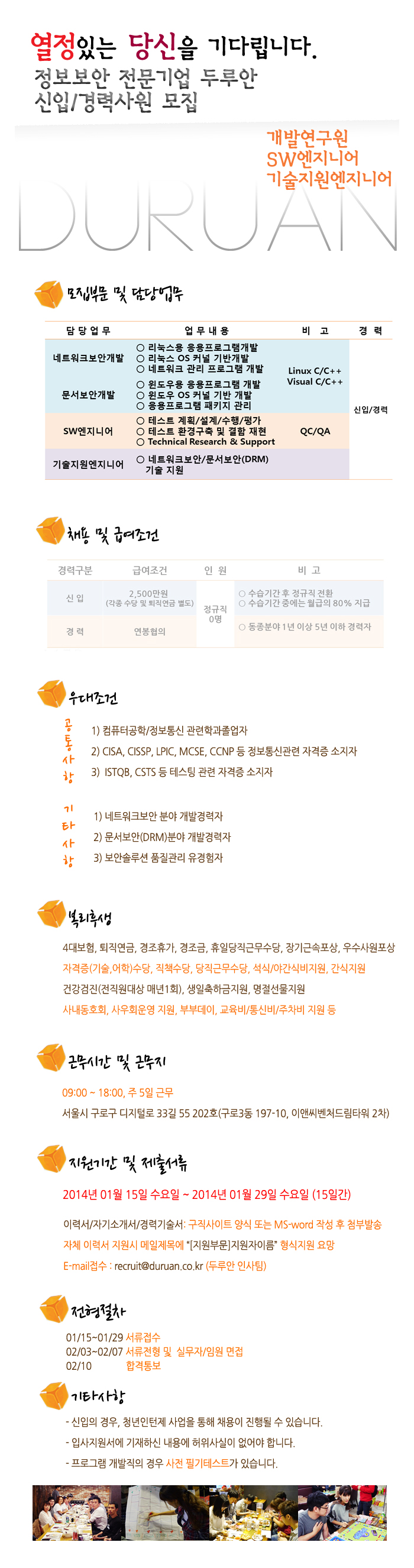 [채용공고]개발자, 소프트웨어엔지니어, 기술지원엔지니어 신입/경력 사원 모집