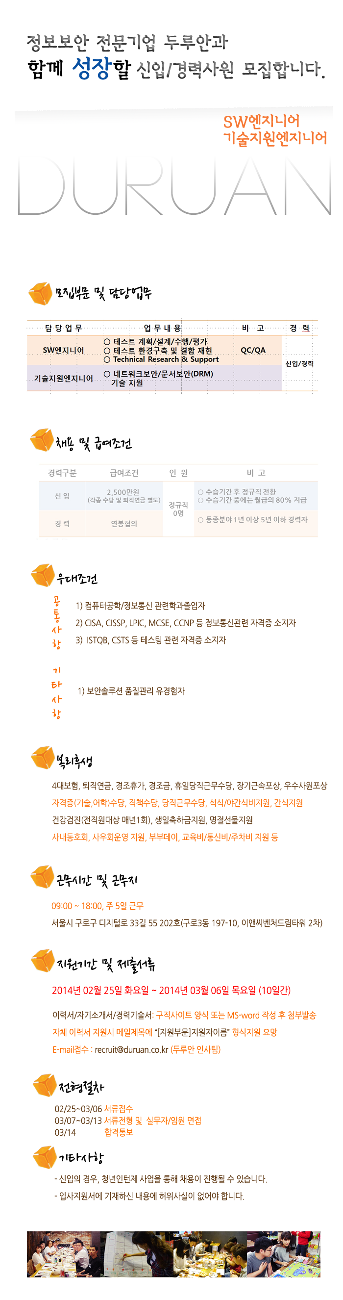[채용공고] 소프트웨어엔지니어, 기술지원엔지니어 신입/경력 사원 모집