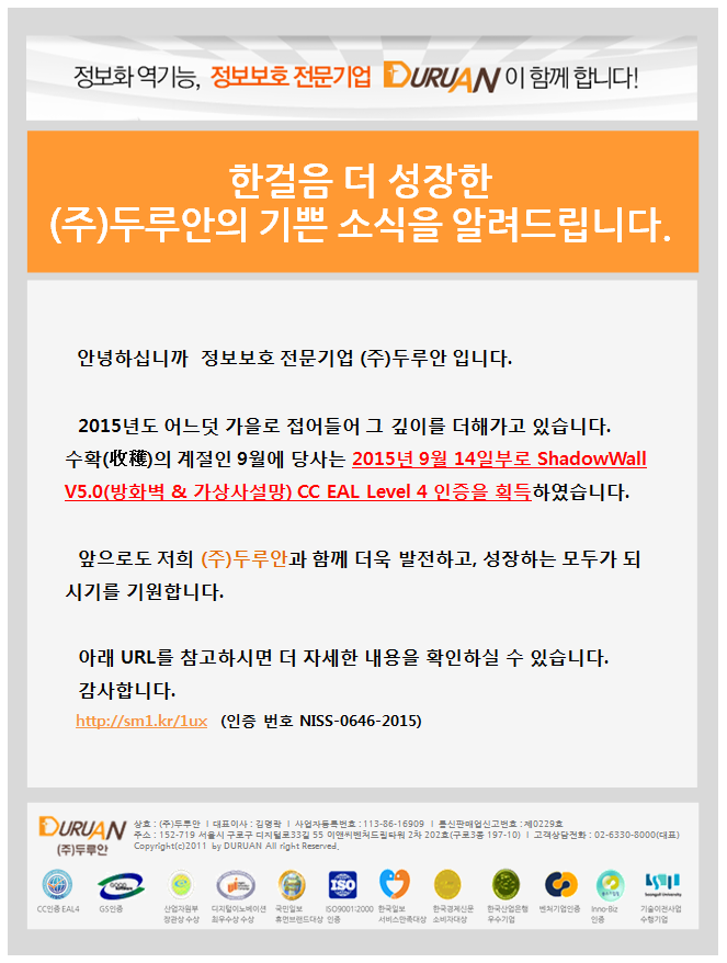 ShadowWall V5.0(방화벽 & 가상사설망) CC EAL Level 4 인증을 획득 안내