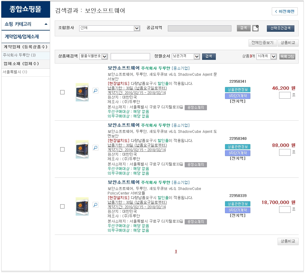 나라장터 검색창에서 검색된 화면은 아래와 같습니다.