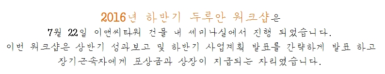 (주)두루안 2016년 하반기 워크샵 개최