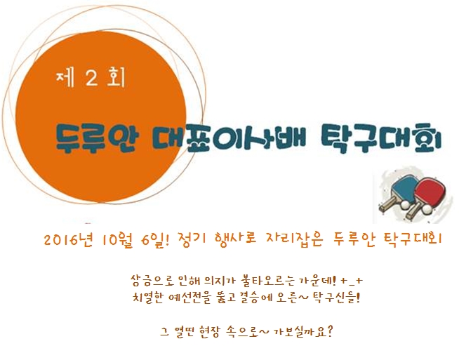 (주)두루안 사내행사 하반기 탁구대회가 개최되었습니다.