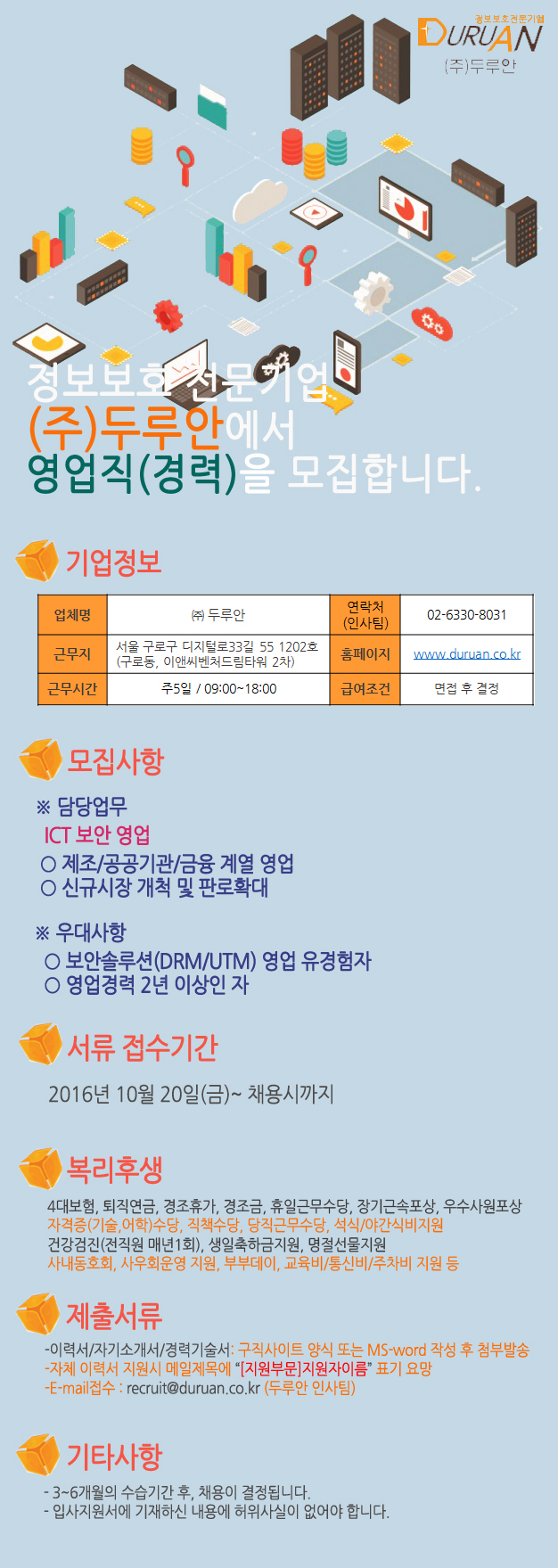 [채용공고] ICT 보안 영업 경력사원을 모집합니다.