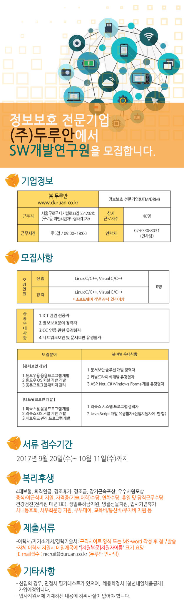 [채용공고] 보안소프트웨어 개발자(신입/경력) 모집