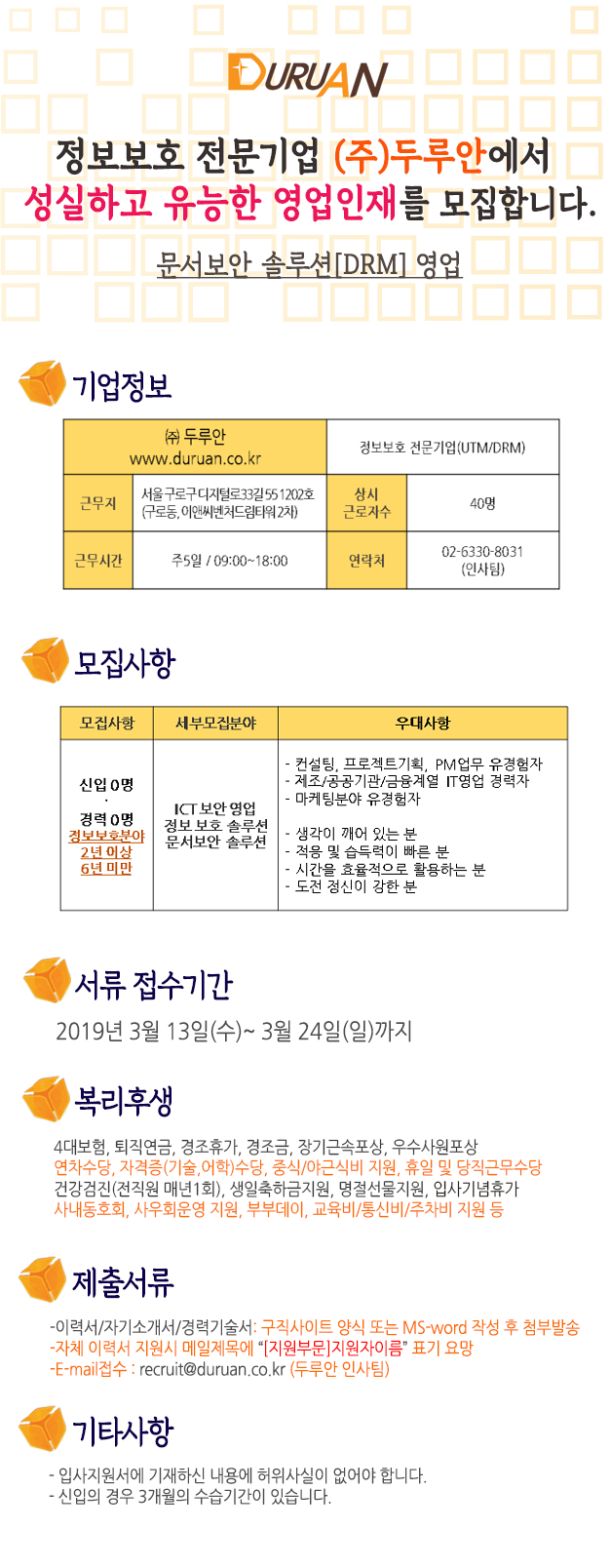 [채용공고] DRM 솔루션 개발자 및 소프트웨어 품질관리 연구원을 모집합니다.