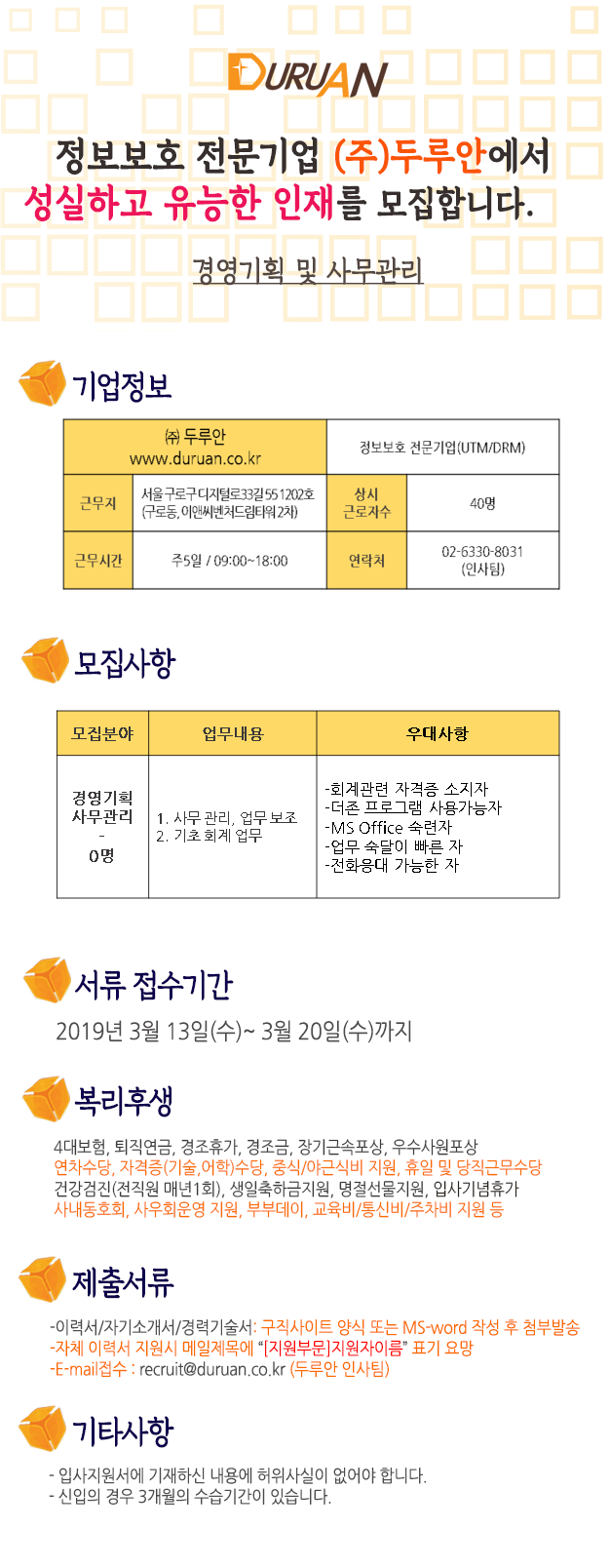 [채용공고] 영업담당자 및 경영관리 사원을 모집합니다.