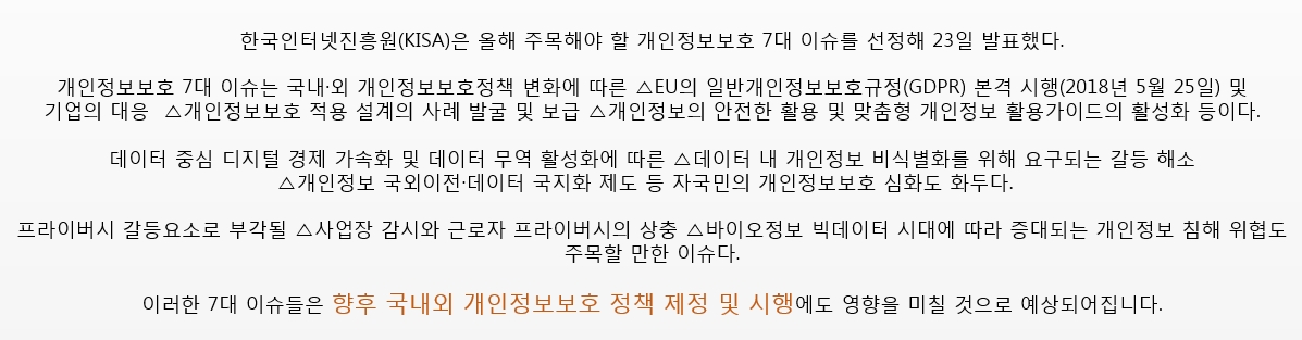 [KISA]2018년 개인정보보호 7대 이슈 전망 발표